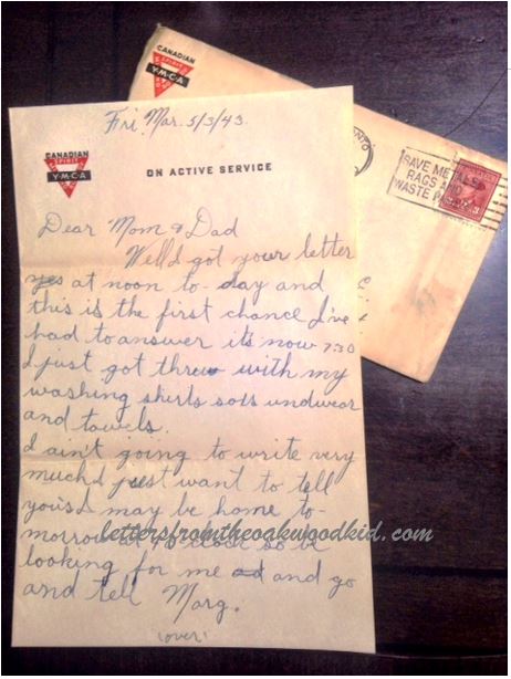 Gord – the man himself. He’s young, from Peterborough area originally. I have heard a few different things on his age when he joined the military, but official paperwork shows him as 19 in 1943 so we’ll go with that. Later letters are signed as The Oakwood Kid, which is where the blog name was born from. Oakwood, Ontario is where (I believe) his parents moved to around 1944, and possibly where they were originally from – Oakwood is in the Kawartha Lakes area (like I said, pieces are still missing).